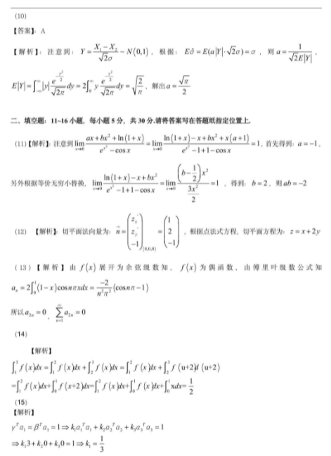 2023年全国硕士研究生招生考试数学(一)真题解析