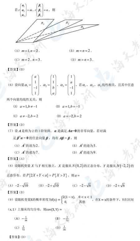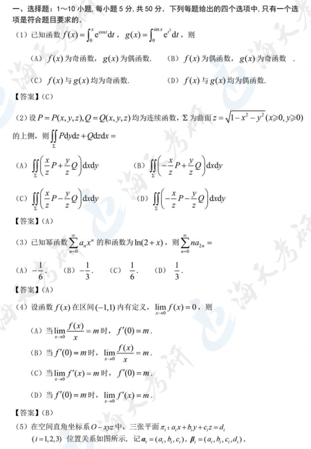 2024考研数学一真题及答案解析汇总